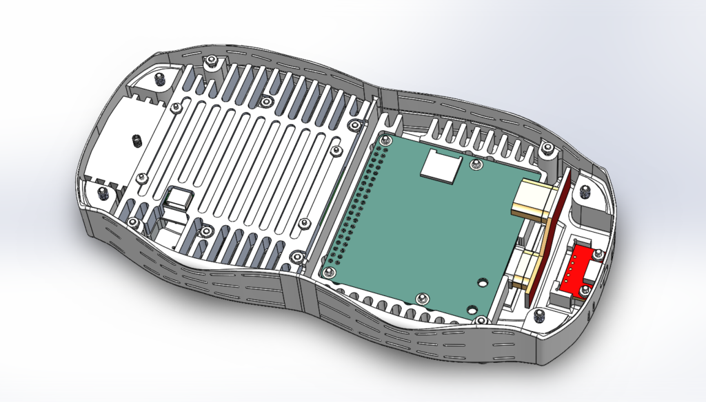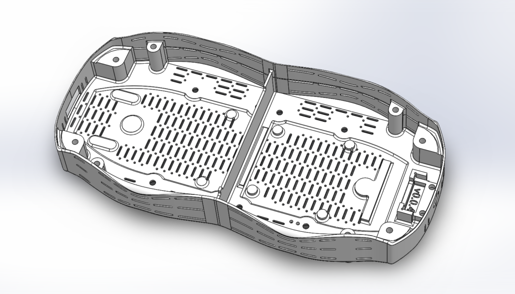 The white, bottom plastic shell of the Nelson was vented to allow air to flow while insulating the heat sinks from physical touch when handling.